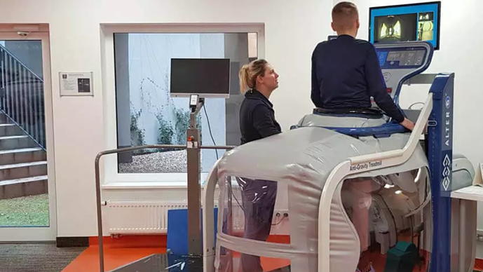 Bieżnia antygrawitacyjna umożliwia trening biegowy przy odciążeniu masy ciała nawet o 80%. Wyjątkowa precyzja bieżni daje możliwość dokładnego określenia przedziału wartości, w którym wykonywane ćwiczenia są bezbolesne, a terapia skuteczna. Unikalna technologia minimalizuje obciążenia i skutki treningu powstałe podczas chodu lub biegu i umożliwia stopniowy powrót do pełnej sprawności w naturalnych warunkach.